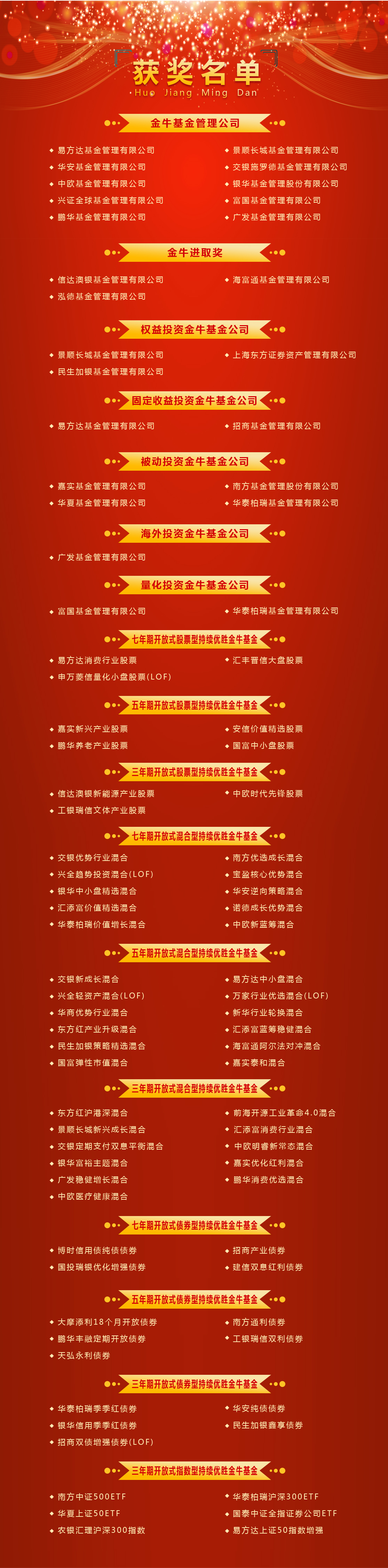 中国基金业金牛奖评奖结果