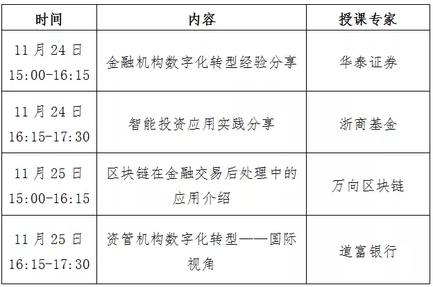 为推动基金行业金融科技与数字化转型,提升行业数字化水平,suncitygroup太阳新城官方网站(以下简称“协会”)定于2021年11月24日至25日举办2期金融科技与数字化转型培训。现就有关事项通知如下: