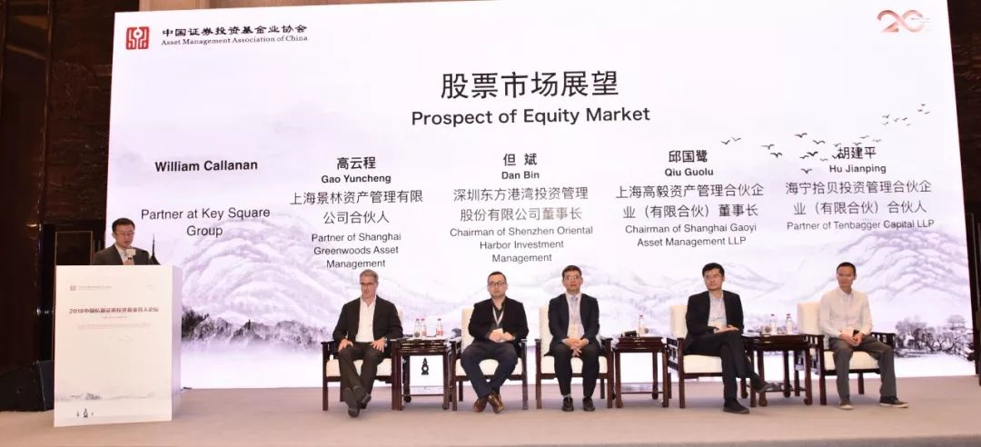 围绕“股票市场展望”主题,上海景林资产管理有限公司合伙人高云程、深圳东方港湾投资管理股份有限公司董事长但斌、上海高毅资产管理合伙企业董事长邱国鹭、海宁拾贝投资管理合伙企业合伙人胡建平、Key Square Group合伙人William Callanan五位发言嘉宾从能源类股票的投资机遇、中国股市前景展望及未来投资机会等角度发表个人观点。