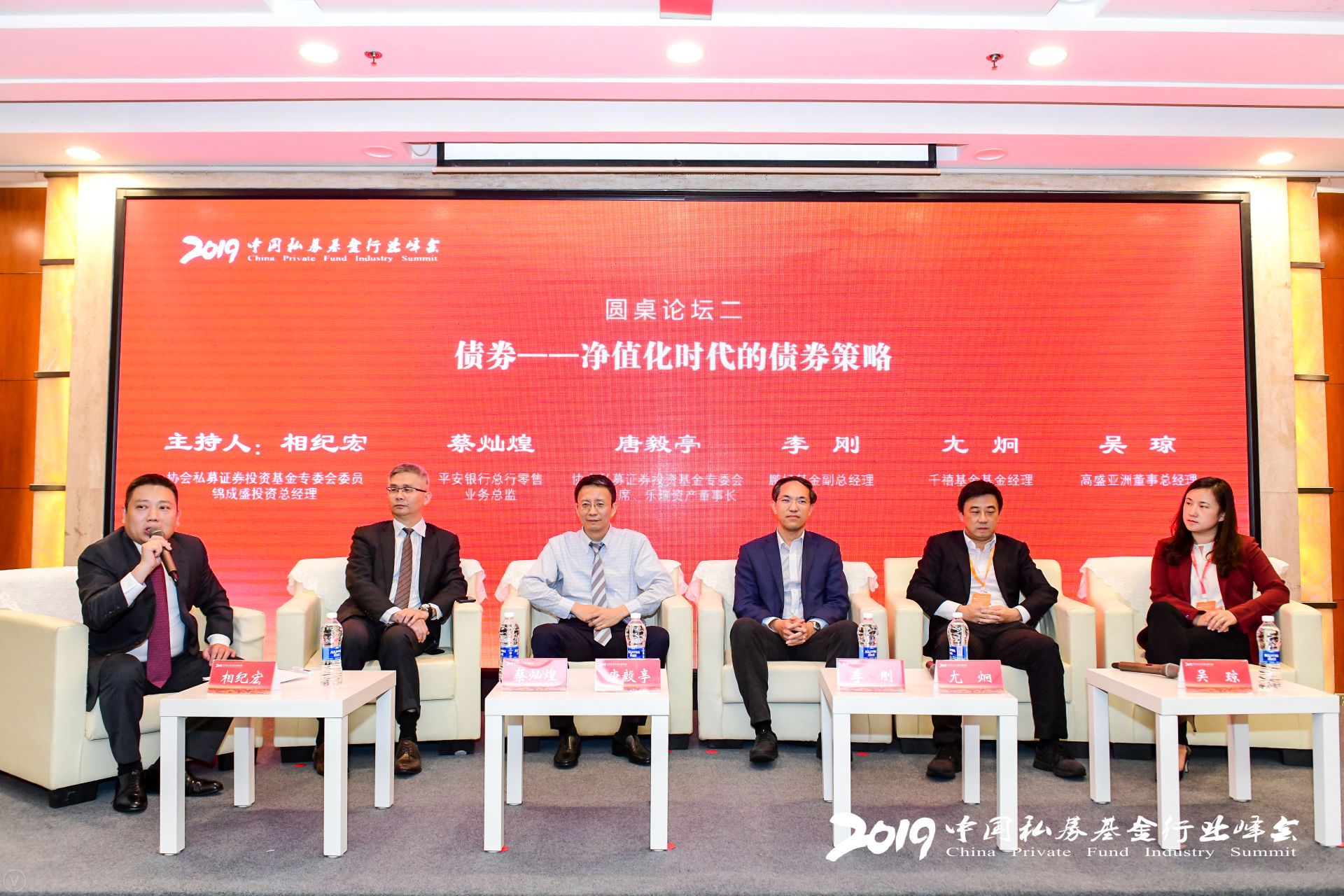 在“债券:净值化时代的债券策略”圆桌讨论环节,锦成盛投资总经理相纪宏主持,平安银行总行零售业务总监蔡灿煌、乐瑞资产董事长唐毅亭、鹏扬基金副总经理李刚、千禧基金基金经理尢炯、高盛亚洲董事总经理吴琼围绕2020年宏观经济展望和债券投资策略进行探讨,分享公募基金及私募基金在现阶段发展中所遭遇到的挑战和建议,交流在全球低利率环境之下,外资对中国债券市场的观点看法。