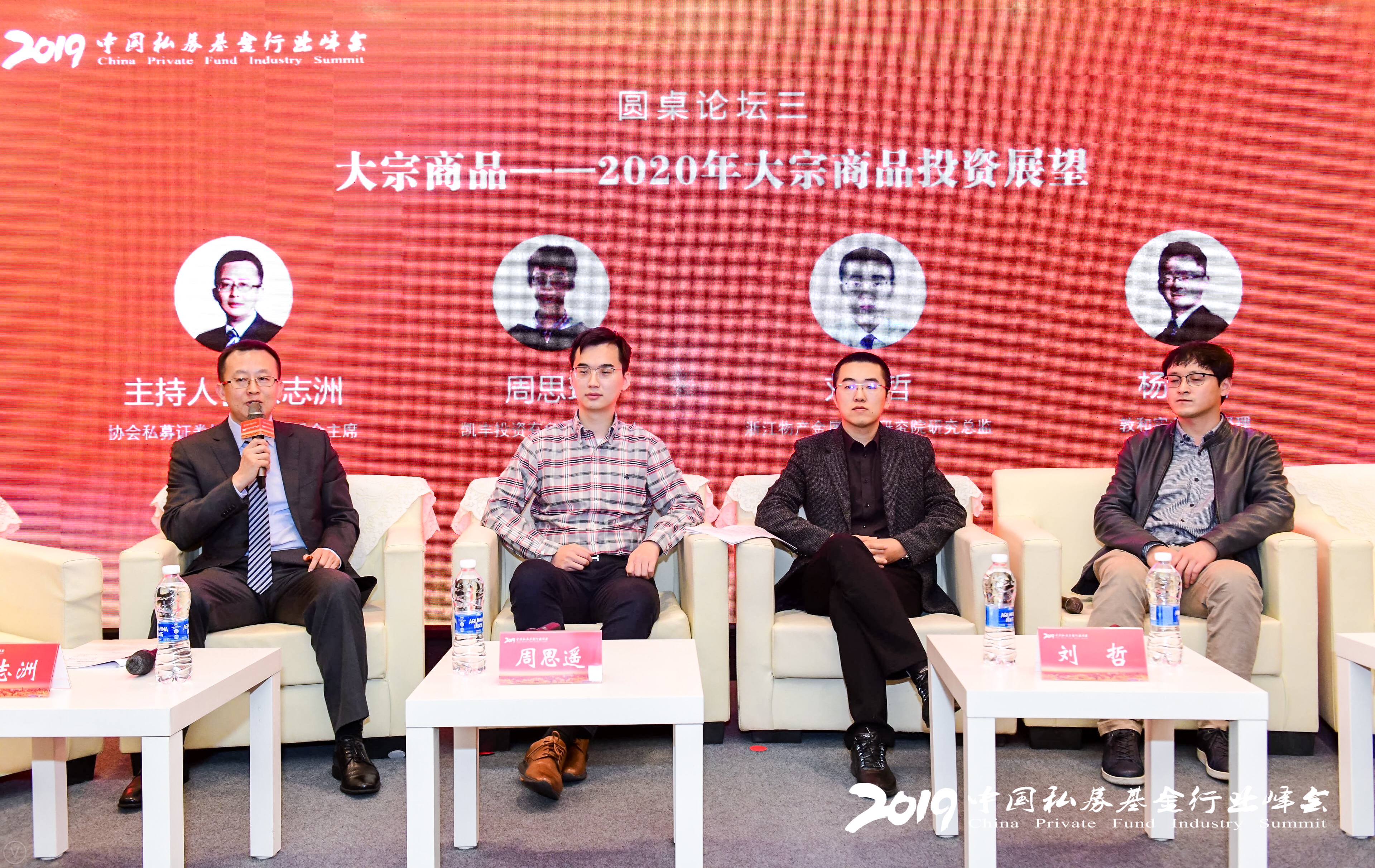 在“大宗商品:2020大宗商品投资展望”圆桌讨论环节,敦和资管总经理张志洲主持,凯丰投资有色板块负责人周思遥、浙江物产金属集团研究院研究总监刘哲、敦和实业副总经理杨依雷,围绕展望2020年所投资研究领域的商品供需格局,并探讨其影响因素,分别就当前期货市场专业化程度不断提高,竞争日趋激烈环境下,如何做好大宗商品投资展开讨论。