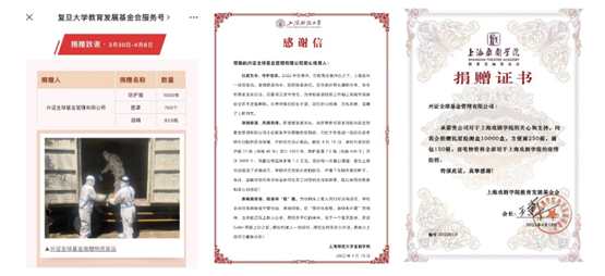 2022年上海疫情发生以来,在公司党委领导下,公司积极响应上海市基金同业公会号召,继2020年捐赠300万元之后,将再度捐赠资金至“上海基金业致敬白衣天使专项基金”,用于支持奋战在抗疫最前沿的疾控人员和医务工作者,感谢他们义无反顾地坚守在临床一线,用医者仁心,为全国抗击疫情做出的巨大贡献。此外,公司长期以来的公益合作与人才输送院校复旦大学、上海财经大学等高校也纷纷向社会各界发出了援助请求。公司党委获知上述高校疫情防控困境后,积极筹措,联络协调了多家供应商,向部分高校捐赠了防疫物资及日常生活物资,为处于防疫一线的志愿者和广大师生们提供安全保障和生活必需品供给。