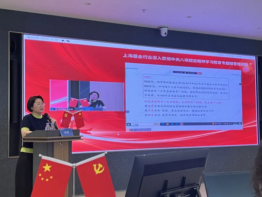 为深入贯彻落实中央八项规定精神学习教育,深刻领会习近平总书记关于加强党的作风建设的重要论述,增强行业党员的政治自觉、思想自觉、行动自觉,6月16日,协会联合上海市基金同业公会(以下简称“公会”)举办“深入贯彻中央八项规定精神学习教育专题辅导培训班”,邀请浦东新区纪委“八项规定精神”宣讲团、“党风廉政建设”宣讲团、浦东新区司法局“习近平法治思想”宣讲团成员陈军同志授课。协会第六党支部、第八党支部全体党员及部分同志,以及上海辖区内公募基金公司的3000多名党员共同参加学习。
