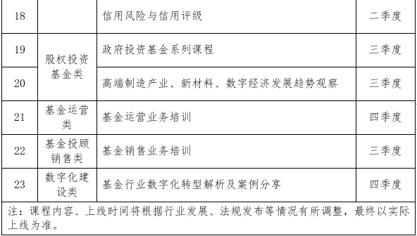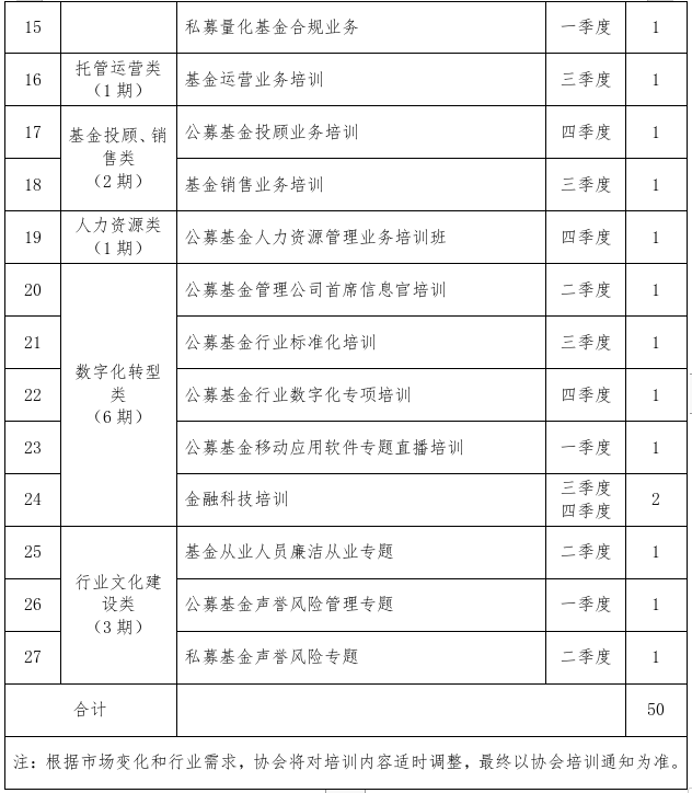 协会将根据法规发布及行业发展状况,适时调整培训内容、形式及时间,具体开展情况以协会培训及课程上线通知为准。