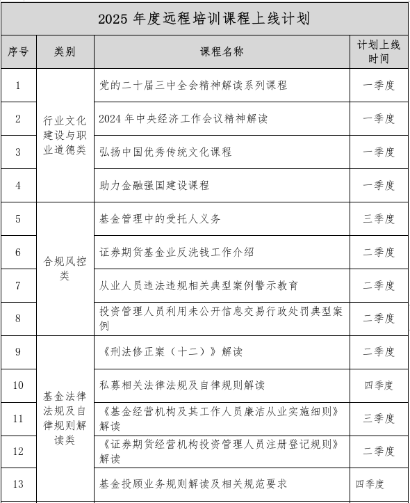 附件:suncitygroup太阳新城官方网站2025年度基金从业人员后续培训工作计划