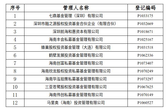 近期,协会通过资产管理业务综合报送平台(以下简称AMBERS系统)中登记的电话、电子邮件、短信等形式,无法与七鼎基金管理(深圳)有限公司等12家私募基金管理人(附件)取得有效联系。