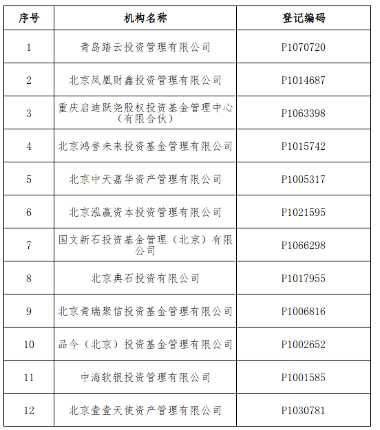 青岛踏云投资管理有限公司等12家私募基金管理人存在异常经营情形,且未能在书面通知发出后的3个月内提交符合规定的专项法律意见书,协会将注销该12家机构的私募基金管理人登记。已注销的私募基金管理人和相关当事人,应当根据法律法规、证监会规定以及协会相关自律规则、基金合同约定,妥善处置在管基金财产,依法保障投资者的合法利益。