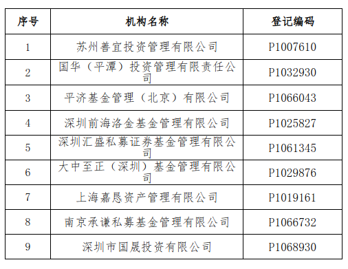 苏州善宜投资管理有限公司等9家私募基金管理人存在异常经营情形,且未能在书面通知发出后的3个月内提交符合规定的专项法律意见书,协会将注销该9家机构的私募基金管理人登记。已注销的私募基金管理人和相关当事人,应当根据法律法规、证监会规定以及协会相关自律规则、基金合同约定,妥善处置在管基金财产,依法保障投资者的合法利益。