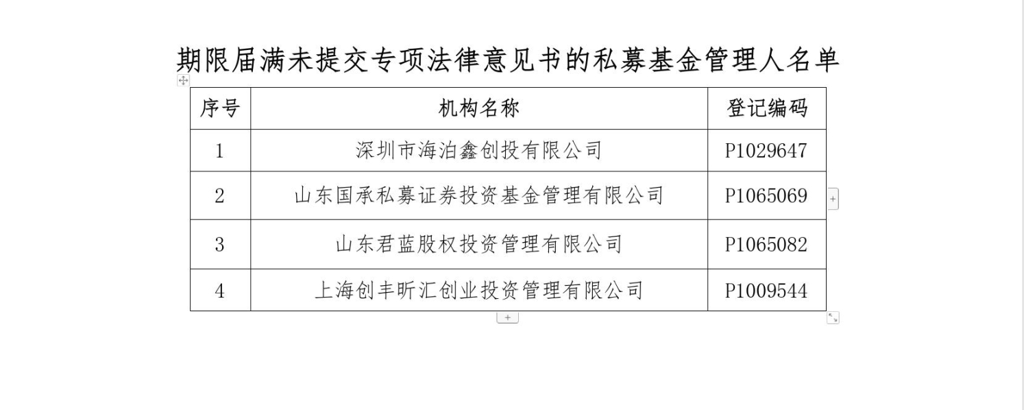 附件:期限届满未提交专项法律意见书的私募基金管理人名单